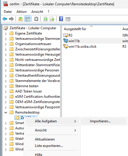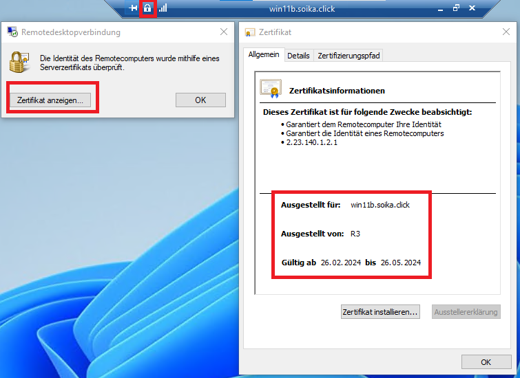 Wir benötigen den Fingerabdruck von unserem R3 Zertifikat. In meinem Fall also: